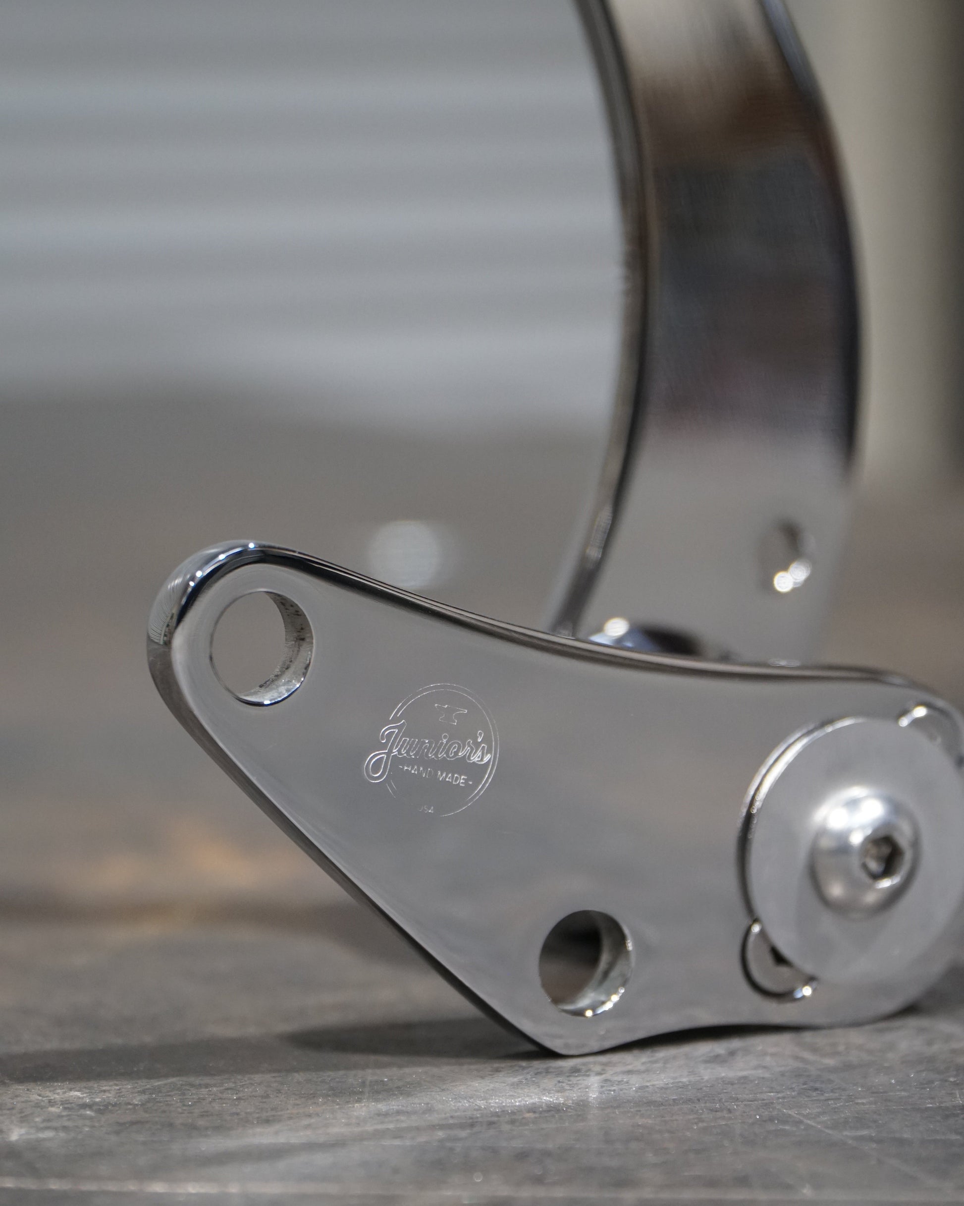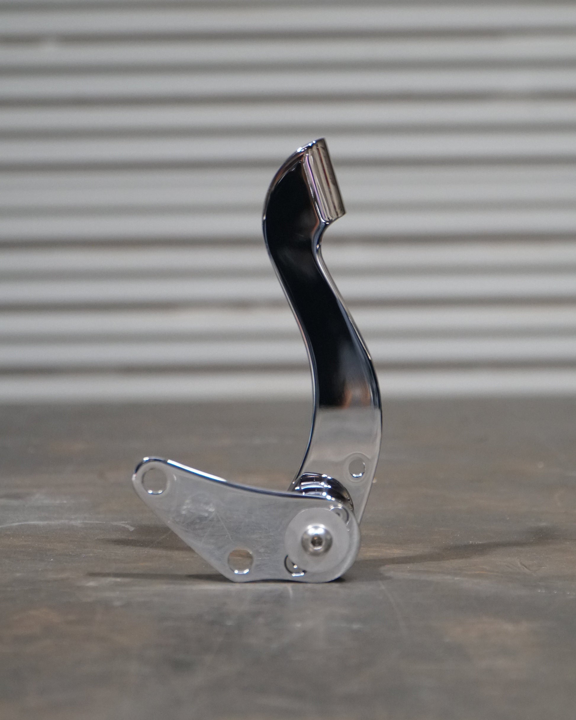 EZ pedals are bent by hand and carefully edge prepped for finish quality. They are hand polished to a mirror finish and feature a CNC'd center spool and two piece shaft for tight tolerance and perfect fit to the serviceable Oillite bushing pressed into the spool.