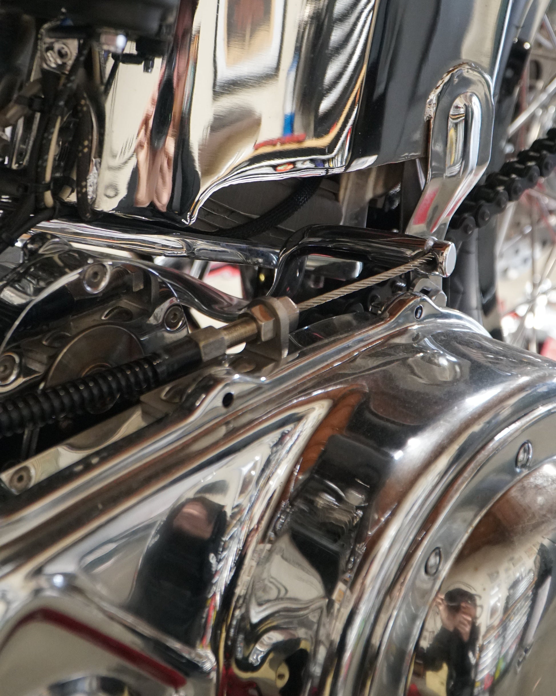 For use with big twin Harley-Davidson engines and matching 4 speed transmissions.
