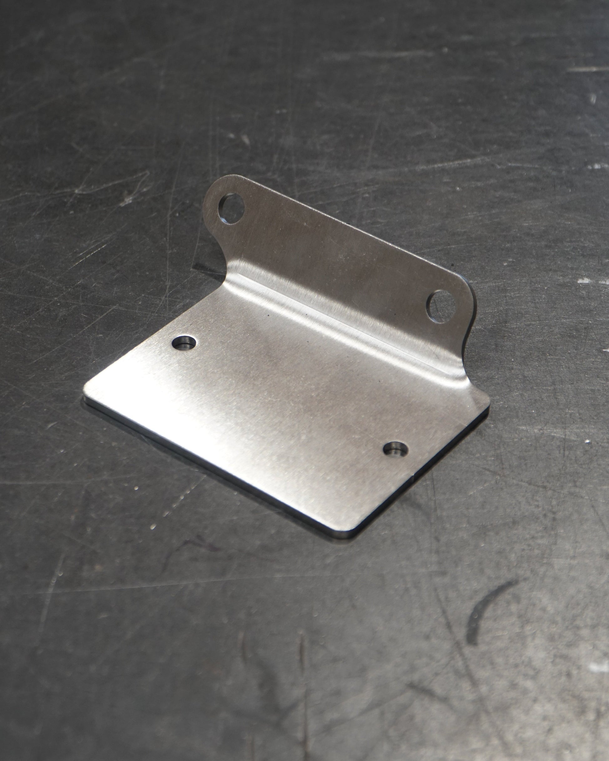 Laser cut from 304 SS, I use these brackets to move to regulator over towards the primary side of the frame for clearance when making custom exhaust or use of early "squish pipe" exhaust.